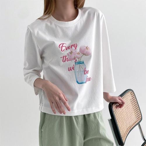 [다잇템]여자 필기체 U넥 허리셔링 꽃병 8부소매 맨투맨 (12713570A)