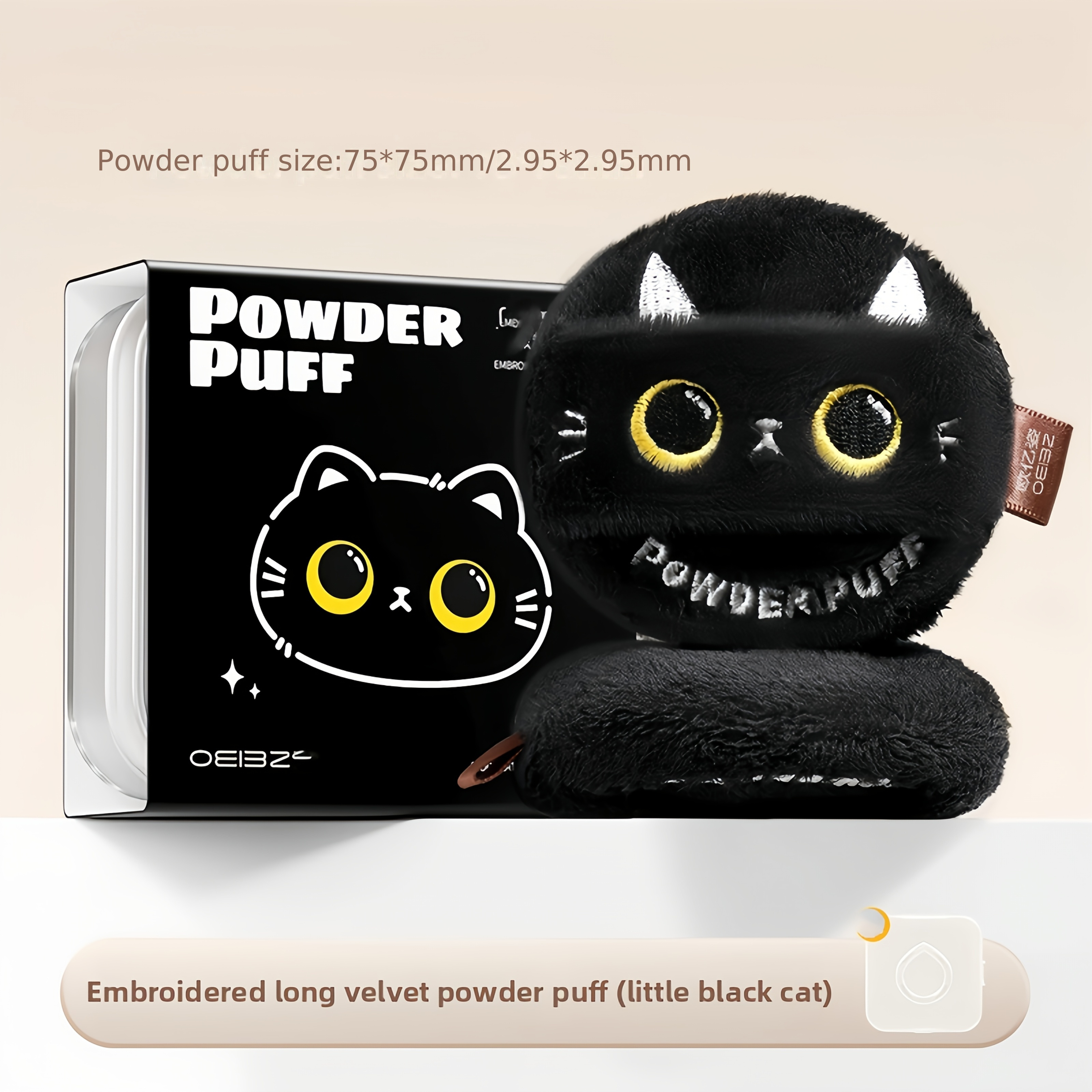 TEMU 소프트 포커스 마이크로더마브라시온 메이크업 스펀지 - 양면 긴 섬유 동물 시리즈 블랙 캣 디자인, 향기가 없는 일반 밝은 베이지, 자극적이지 않고 막지 않는, 미용 도구, 재미있는 디자인, 편안한 손잡이