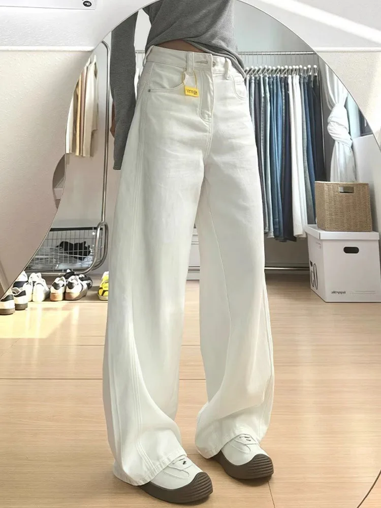 하이웨이스트 청바지 여성용 루즈핏 스트레이트 레그 팬츠 드레이프 와이드 레그 데님 팬츠