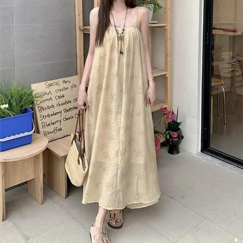이쁘다요 끈 여성 롱 스트링 실키 나시 원피스 WFLMPMT