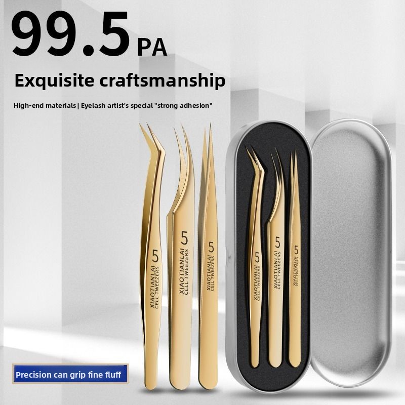 TEMU 고정밀 인조 속눈썹 핀셋 세트, 초보자를 위한 전문가용 접목 도구, 골든 페더 핀셋 포함 풀세트, 속눈썹 아티스트용 디자인