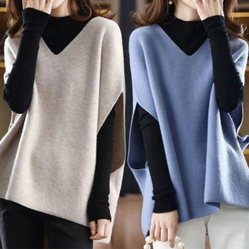 혼방 가을 겨울 여성용 V넥 솔리드 컬러 풀오버 조끼 니트 조끼 K103