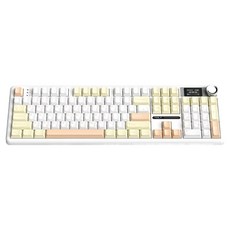 AULA F108Pro 유무선 아우라 독거미 LCD 기계식키보드 국내정품 치즈 화이트, 저소음 솜사탕축