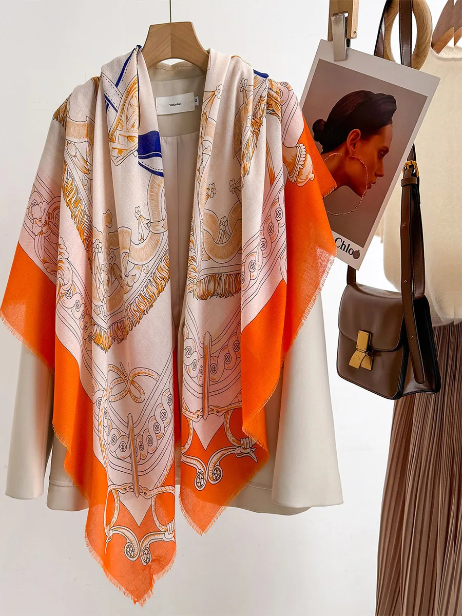 여성용 우아한 오렌지색 숄 스카프, 여름 야외용 장식 태슬 디자인, 유행하는 트렌디한 폴리에스터 섬유 롱 직사각형 스카프