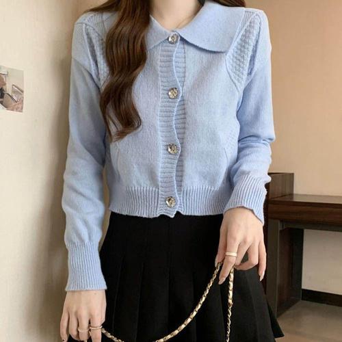 [셀럽하우스]여성 VIKQ1166 하늘색 가디건 카라 숏가디건 여대생 데이트룩