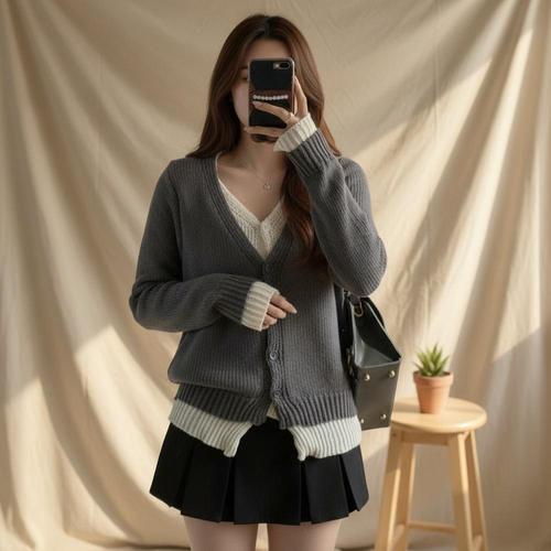 [신상오픈런]크롭셔츠 키치 레이어드 골지 브이넥니트 숏가디건 (30462815)