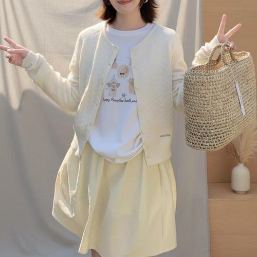 여성 미니 가디건 라운드넥 숏 크롭 레이어드 봄 얇은 긴팔 루즈핏