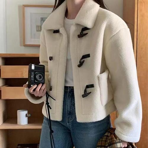 (색상-사이즈 아이보리-FREE)부클 양털 더플 숏자켓 여성 겨울 데일리 따뜻한 아우터