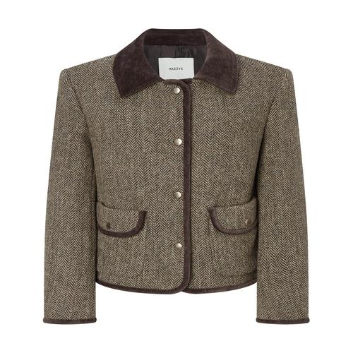 헤지스 여성 해리스트위드 벨벳배색 숏자켓 다크베이지 (HSJA5D907I3)
