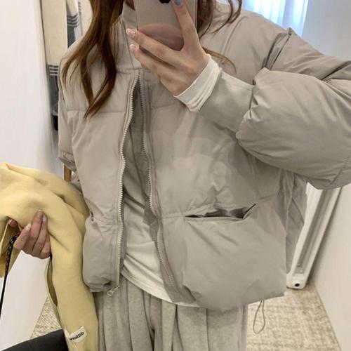 BIKASU 여성 캐주얼 노카라 경량 숏패딩 오리털 빅사이즈 패딩 겨울 점퍼 아우터