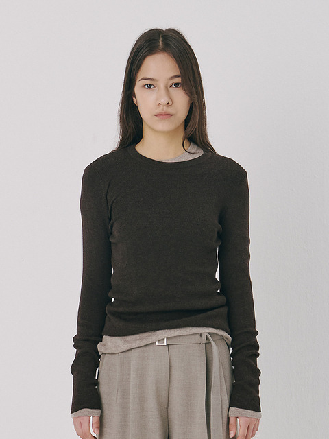 [써누스 포 우먼] 32325 라운드 절개 니트 - 베이지/브라운