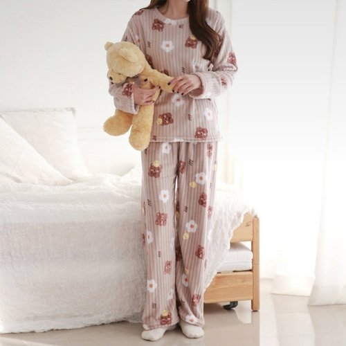 DDO 극세사 수면잠옷 곰돌이 패턴 상하세트 겨울 홈웨어 CW모모