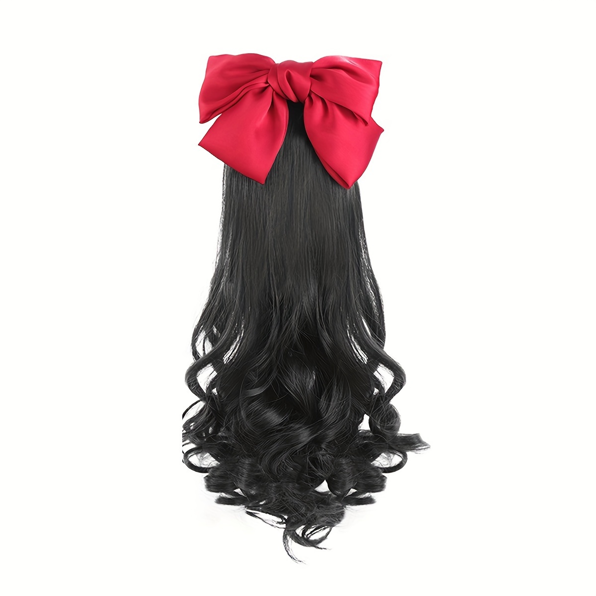TEMU 시크한 레드 보우 포니테일 헤어 익스텐션 여성 & 소녀용 - 긴, 루즈 웨이브 합성 섬유 헤어 액세서리, 어떤 헤어스타일에도 볼륨 & 스타일을 더해주는, 스타일 부스팅 액세서리 | 우아한 헤어 액세서리 | 합성 섬유 익스텐션, 소녀용 헤어 액세서리