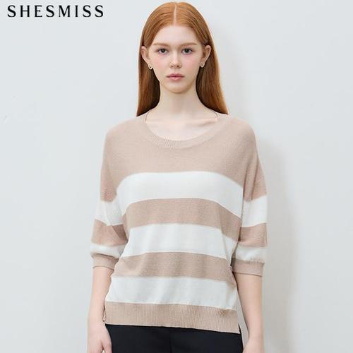 [쉬즈미스][쉬즈미스] 스트라이프 라운드넥 울 니트 탑
