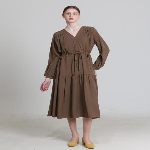 [쉬즈미스][쉬즈미스(SHESMISS)] 울 블렌드 브이넥 플리츠 원피스 (택가격278000원)