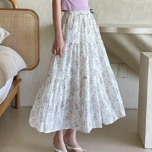 [라일리여성의류] Rly 꽃무늬 밴딩 치마 여자 A라인 쉬폰 롱 스커트