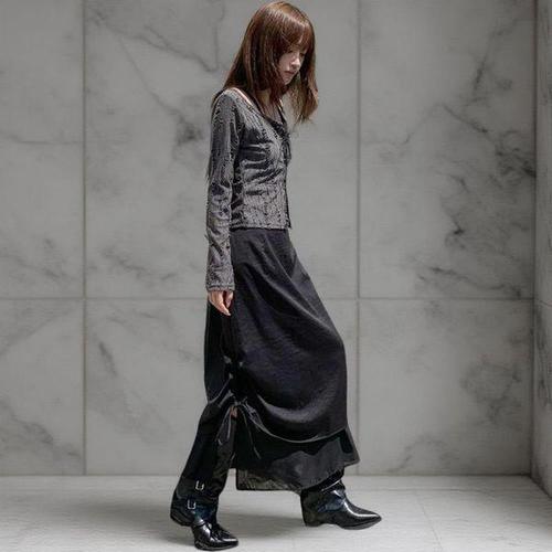 [옷자락] 여성 힙무드 사이드 끈 쉬폰 레이어드 롱 스커트