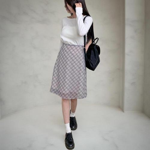 [신상오픈런]여성 러블리 쉬폰 레이어드 a라인 체크 미디 스커트