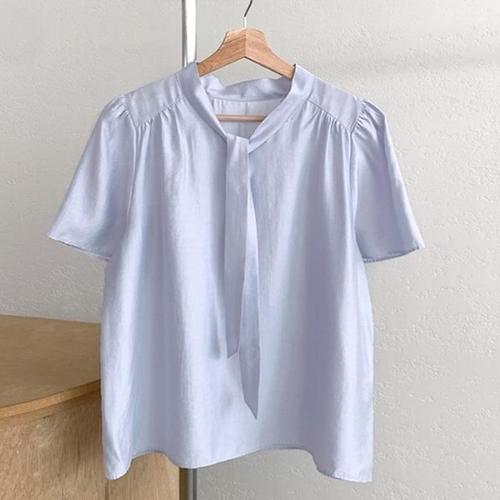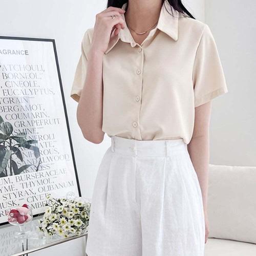 [셀러허브_여성트랜드패션]여성 반팔 무지 소매 여름셔츠 상의 5부 쉬폰셔츠