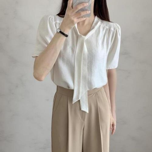 [다잇템]여성 사무실룩 시폰 타이넥 빅사이즈 블라우스 (41089708A)
