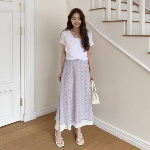 여성 꽃무늬 코디 에이라인 시폰 롱스커트