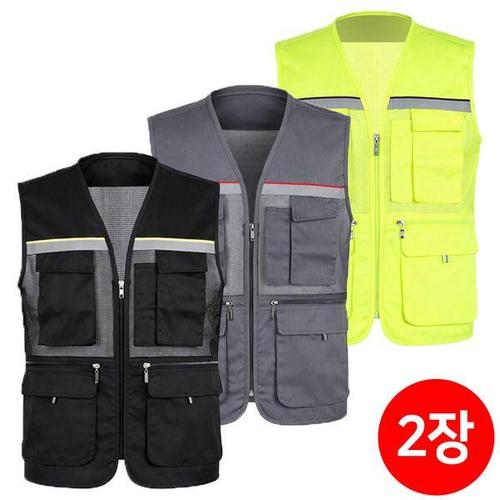 [슈퍼맨아웃도어]1+1 안전반사띠망사조끼 여름 작업복 등산복 안전복 현장 배달 낚시복 신호수 다용도 멀..