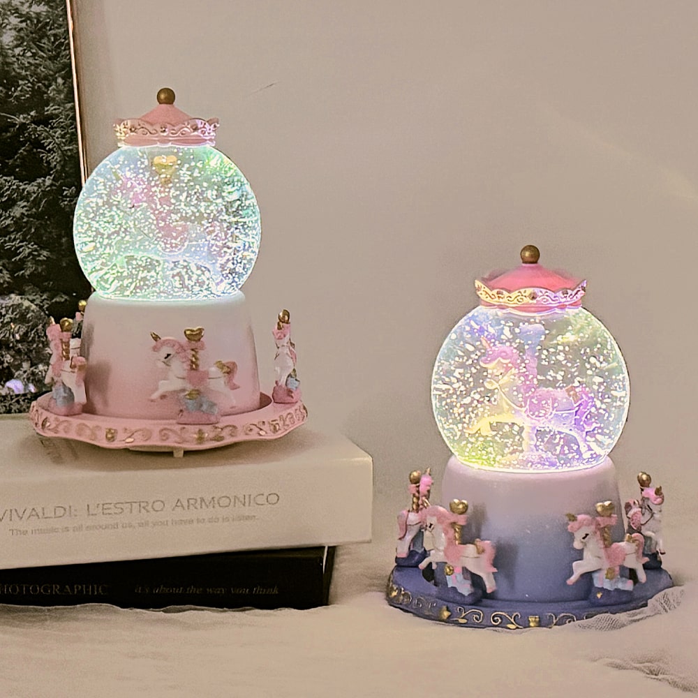 별빛 회전목마 스노우볼 예쁜 인테리어 장식 소품 오르골 무드등 워터볼 조명 2type