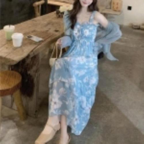 [신상오픈런]여성 여름 뒷트임 스모크 나시 롱 드레스