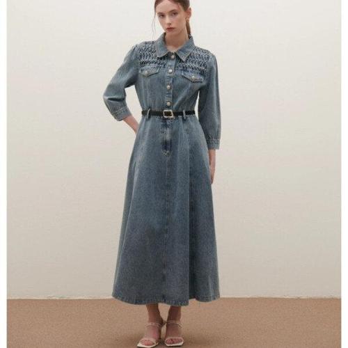 [밸리걸] 백 스모크밴딩 뷔스티에 데님 롱원피스 223860