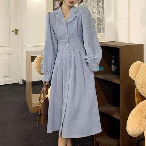 [셀러허브_여성트랜드패션]ONM 여성 원피스 코듀로이 밴딩 카라넥 롱 원피스