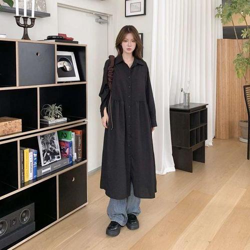 [다잇템][다잇템] 여성 롱 남방 부드러운 마원단 카라넥 빅사이즈 원피스_22984883_588872