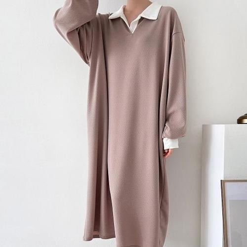 [다잇템][다잇템] 여자 등원룩 가을임부복 카라넥 콘트라스트 편한 롱원피스_23198613_588872