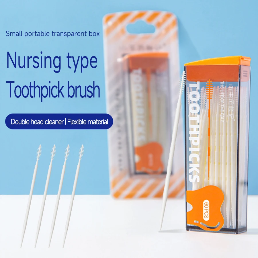 60개/상자 휴대용 물고기 뼈 모양 일회용 플라스틱 이쑤시개 치아 치간 브러시 청소