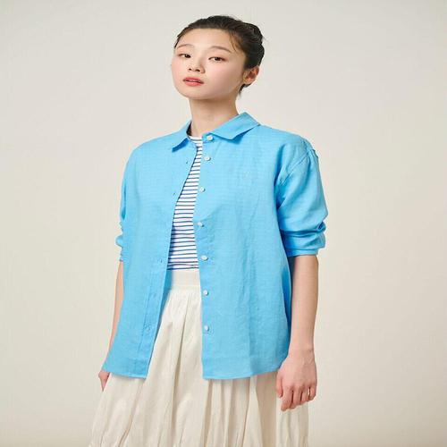 [빈폴레이디스][Essential] 리넨 솔리드 레귤러핏 셔츠 스카이블루 (BF5364E01Q) .
