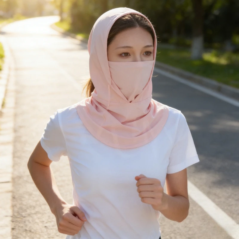 페이셜 지니 여름 스포츠 귀고리 스카프 마스크 목 보호 자외선 차단 아이스 실크 선스크린 마스크 안경 구멍 있는 페이스 베일