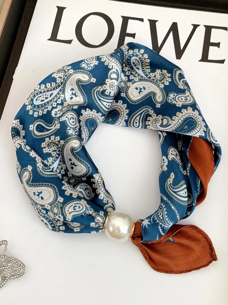 블루 월넛 펄 마그네틱 버클 목걸이 실크 스카프 여성용 쇄골 체인 스카프 장식 목 보호대 봄 여름 가을