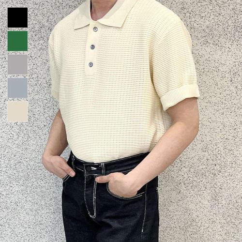 남자 체스 스카시 버튼 카라 반팔 니트티 AS-KNH-Q011-크림