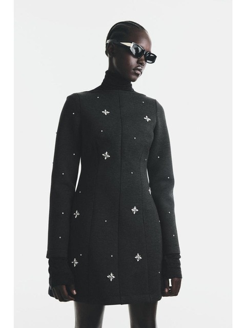[에이치엔엠] 라인스톤 디테일 스쿠버 드레스 차콜 그레이 1313529001