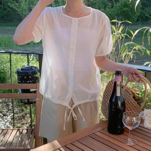 [다잇템]여자 스퀘어넥 비침 벌룬 반소매 블라우스 (15780541A)