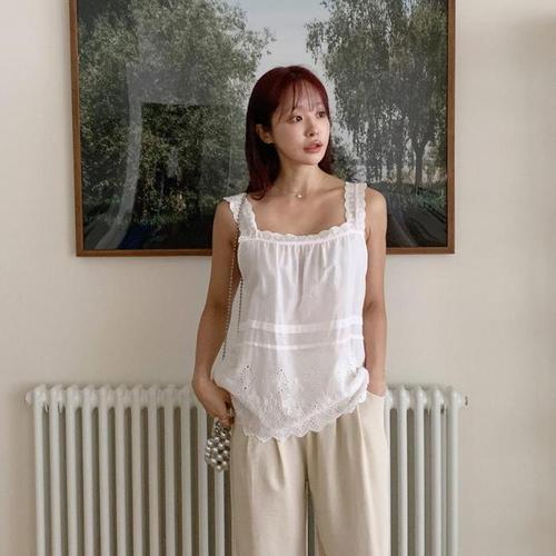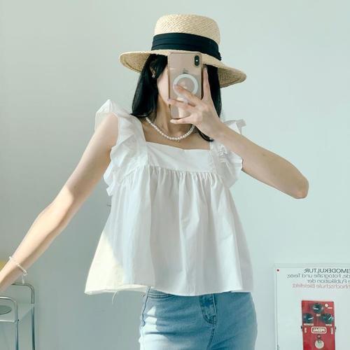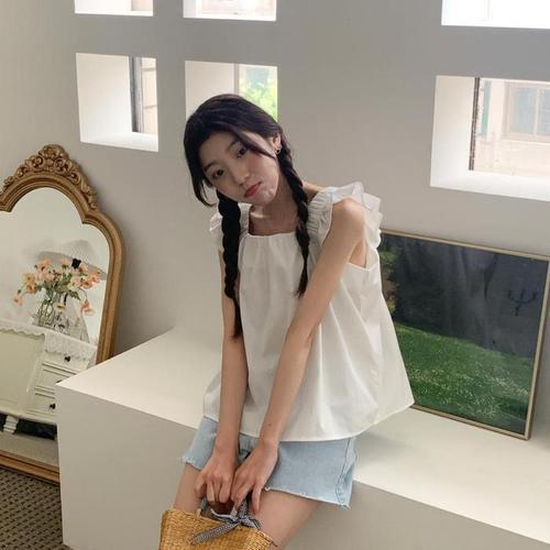 [다잇템]여자 스퀘어넥 SS 프릴 러블리룩 탱크 블라우스 (18986664A)