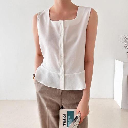 [다잇템]여자 스퀘어넥 여성스러운 슬리브리스 블라우스 (17255382A)