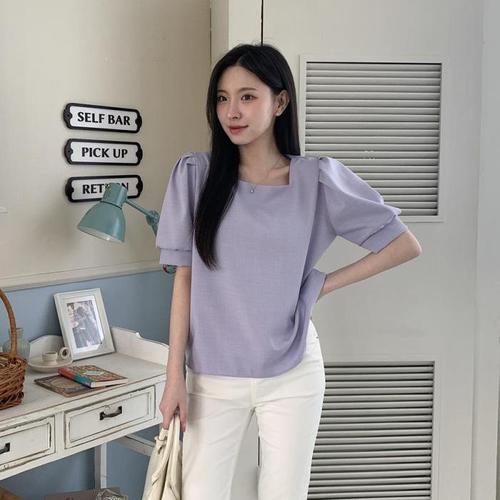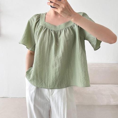 [다잇템][다잇템] 여성 벌룬 SS 스퀘어넥 휴가용 잔주름 반소매 블라우스_24587033_588872