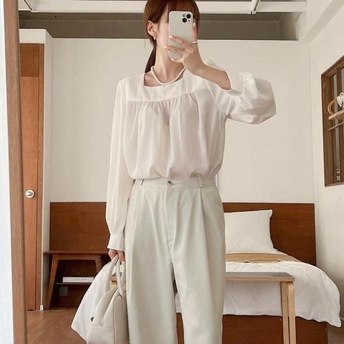 [다잇템]여자 쿨 스퀘어넥 잔주름 여성스러운 블라우스 (15750791A)