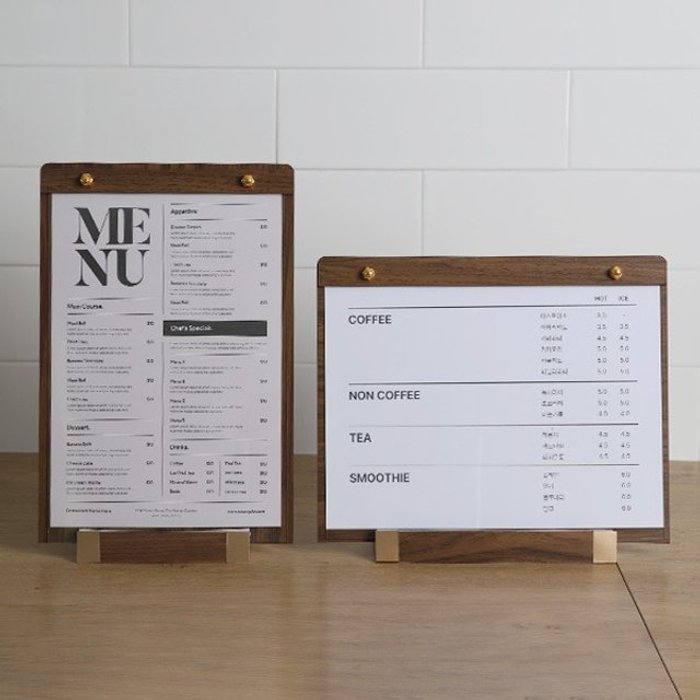 월넛 우드 카페 스크린 골프장 PC방 메뉴판 A5