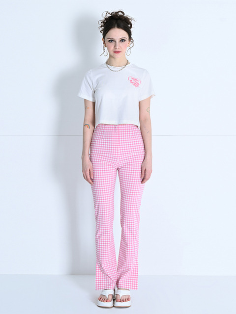 [메이크어토스트] 체크 슬림 슬릿 팬츠 핑크