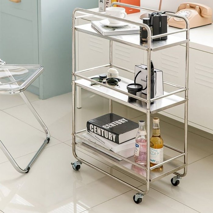 이동식 트롤리 3단 틈새 철제 스텐 미드 센추리 모던 선반