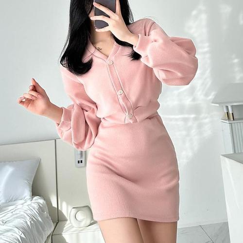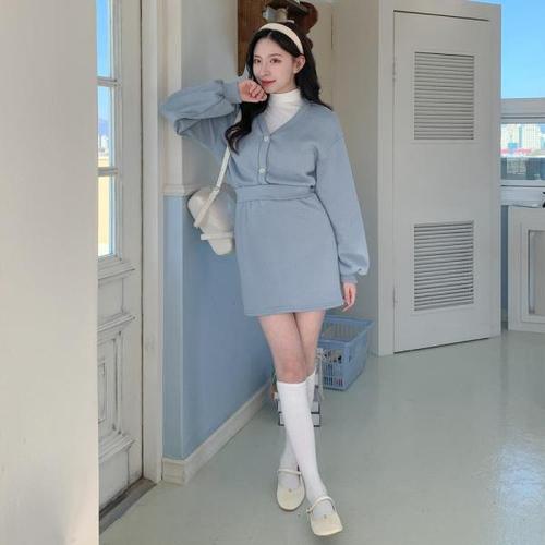 [다잇템]여자 연말룩 겨울 기모 가디건 투피스 세트