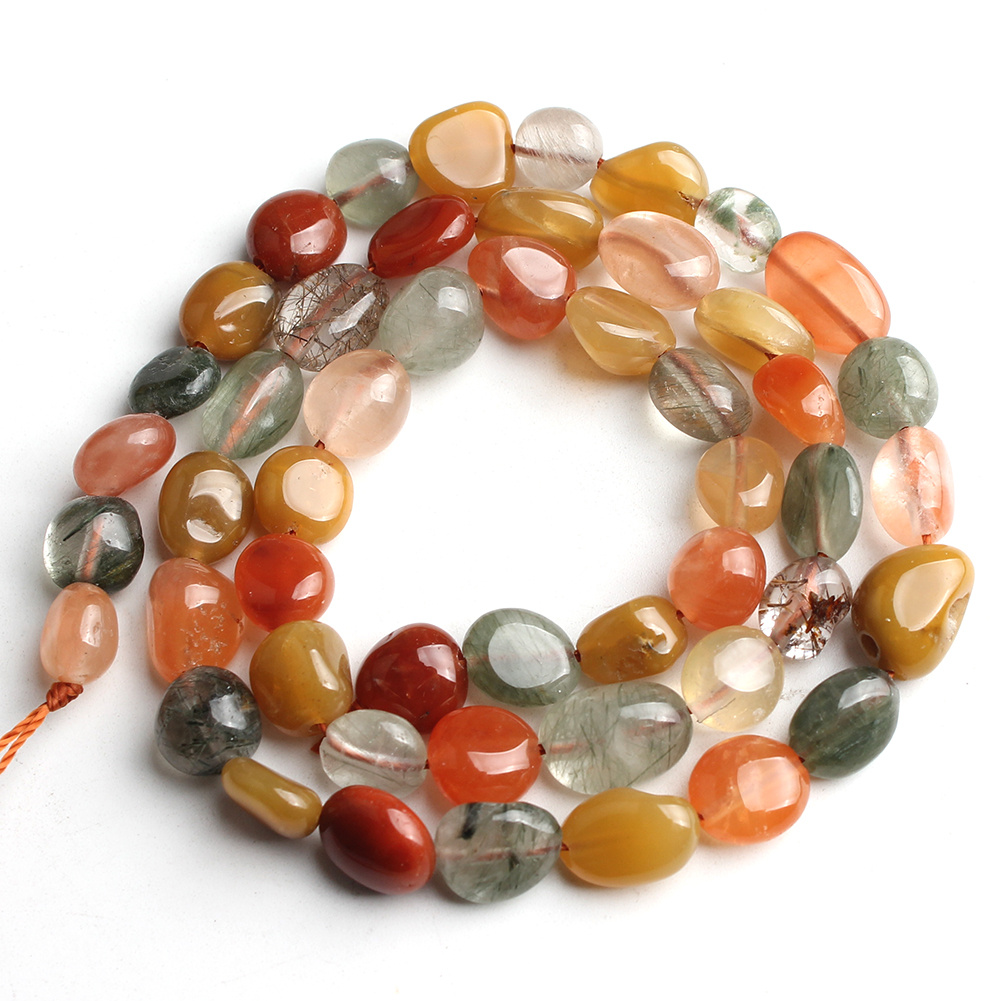 TEMU 47개 6-8mm 천연 석영 루틸레이티드 쿼츠 비즈 - DIY 주얼리 만들기, 팔찌 및 귀걸이 수제 액세서리용 불규칙 루즈 비즈