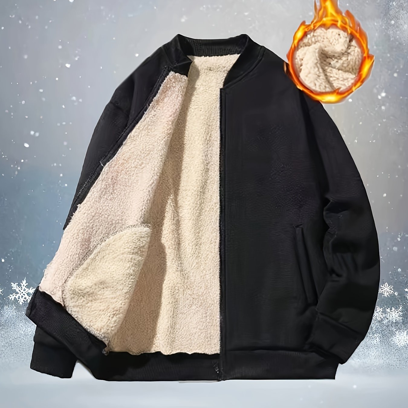 TEMU 남성용 두꺼운 플리스 재킷, 스탠드 칼라 디자인으로 겨울철에 따뜻하고 방풍이 뛰어난 스타일리시하고 활용도 높은 아우터