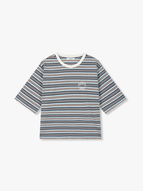 [스튜디오 톰보이] 멀티 스트라이프 크롭 티셔츠_블루 9176322976